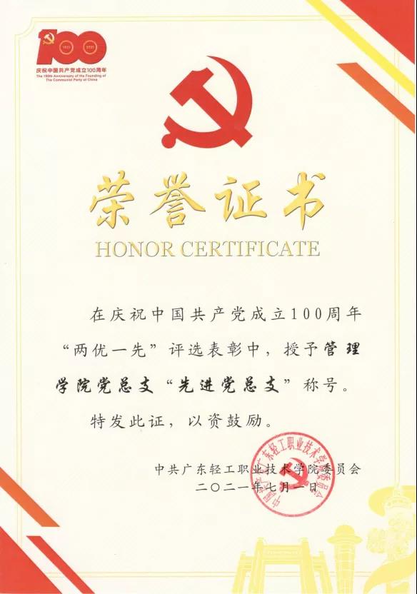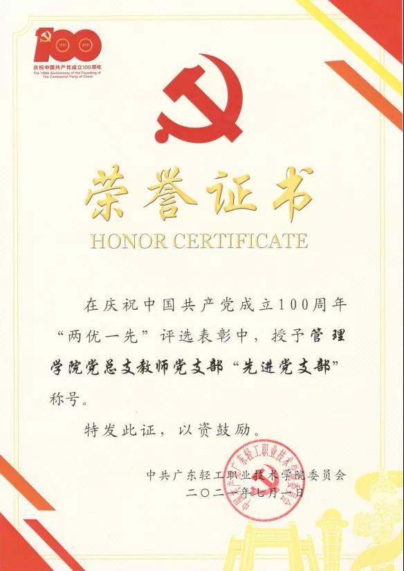 在庆祝中国共产党成立100周年之际,73日,广东轻工职业技术学院召开庆祝中国共产党成立100周年暨两优一先表彰大会。大会上,学习了习近平总书记在庆祝中国共产党成立100周年大会上的重要讲话精神,表彰基层党建先进单位、项目和个人。激励广大党员干部牢记初心使命、传承红色基因、永葆奋斗本色,为实现中华民族伟大复兴不懈奋斗!