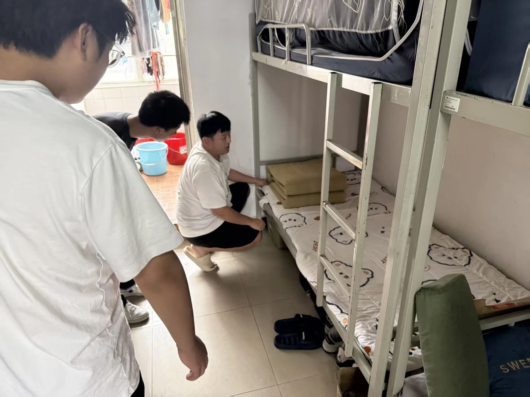 活动中,我们特别邀请了两名经验丰富的退役军人(分别是一名师兄和师姐)走进宿舍,为同学们带来了一场干货满满的内务整理培训,师兄师姐一丝不苟地示范了“豆腐块”军被的折叠技巧(分步拆解,清晰易懂),同学们热情高涨,纷纷动手实操,师兄师姐耐心细致地进行一对一指导,现场学习氛围浓厚。