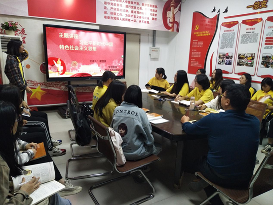 为推进教育,深入领悟习近平新时代中国特色社会主义思想,管理学院党总支于11月11日在广州校区第二工业实训楼A701组织入党发展对象开展了以学习“习近平新时代中国特色社会主义思想”为主题的讲座,党总支书记谢国伟出席本次学习活动。