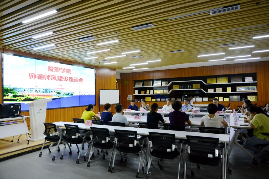 9月8日下午,管理学院与省轻校、化校老师在第二实训楼B604会议室举管理学院集团办学教师师德师风建设座谈会”。管理学院院长刘生华、党总书记谢国伟以及党政班子全体成员,省轻校陈迩东、曹艳玲、龙小芳、肖伟平、钟杏、黄霞、谢雪芬省化校陈淑娟、崔海滨、黄永宣、吕莉、严小英等老师一同参加了会议。