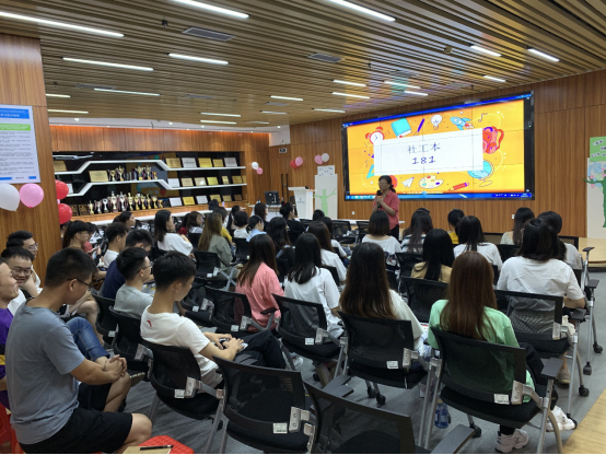 见面会第一环节是专业教育,“逆风飞翔,起舞逐梦”专业宣传片(获2019年第二届广东省职业院校专业文化建设展示大赛高职组,一等奖)让新成员系统了解和认识了这个大家庭的文化、品牌项目和“服务-学习”培养模式,独具浓厚专业特色的培养具有极强的感染力,传递社工人文关怀,令人感触良多。