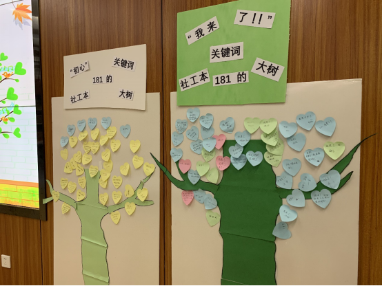 运用社区活动评估方法,特别设计了“三棵树”。第一棵树“我来了”表达新成员对广轻的第一印象。第二棵树“初心”表达了本次见面会后对专业的认识和自我期待。同时约定在毕业前夕,完成第三棵树“收获”反思两年的成长收获。通过这样的“三棵树1”让新成员形成自觉自省的意识,也是一种内驱力的唤醒。