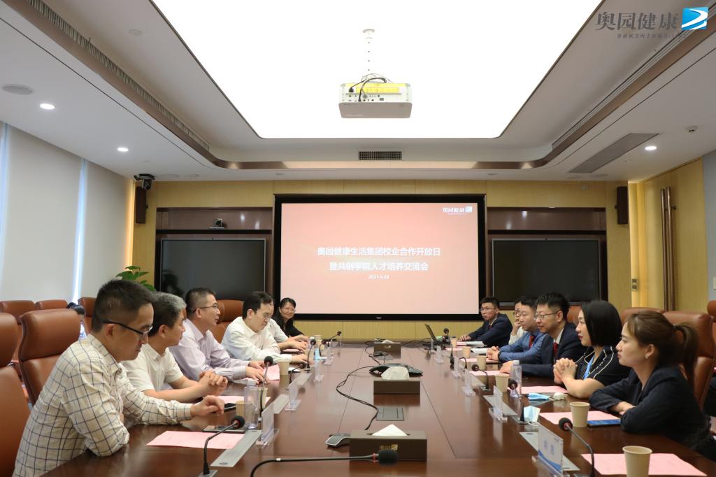 4月20日,广东轻工职业技术学院副校长邓毛程、校企合作办主任李国杰、副主任于丙涛、管理学院副院长宋炜、党政办主任陈海山社区管理与服务专业师生代表一行奥园健康生活集团进行校企合作交流