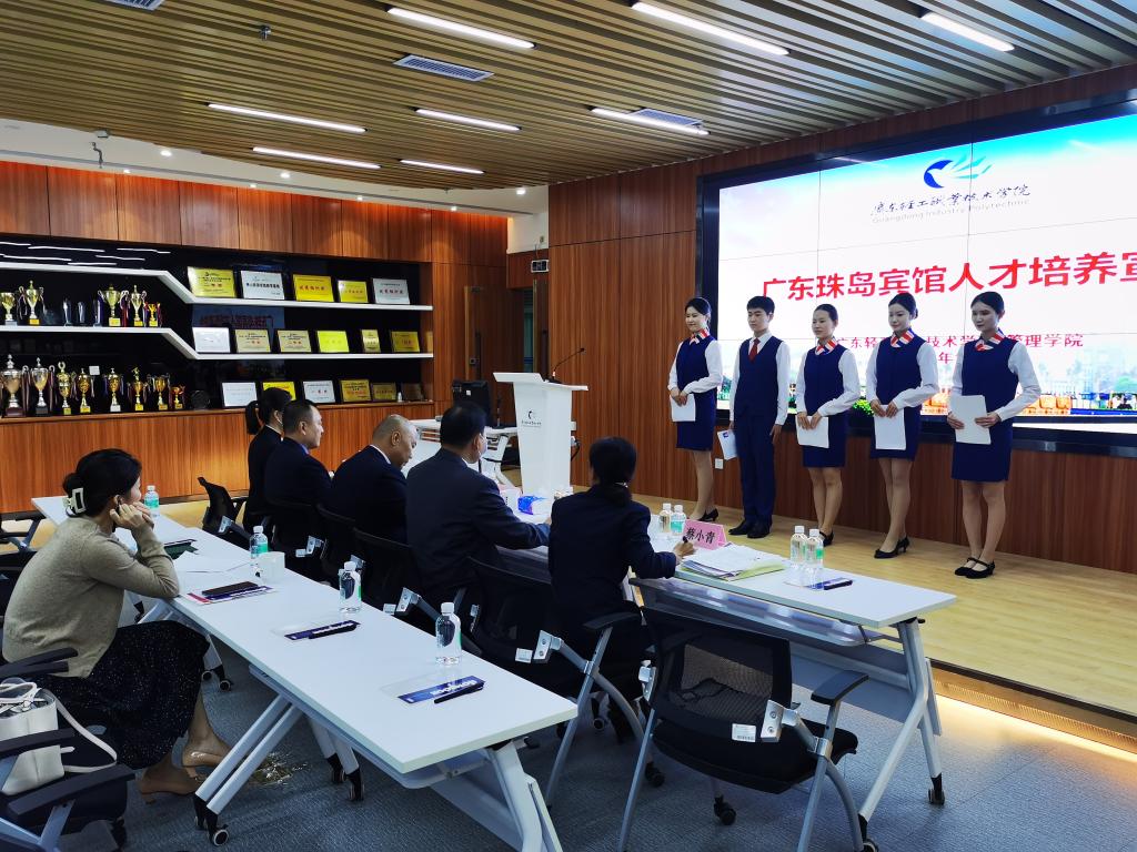 座谈结束后,珠岛宾馆一行领导在管理学院总支书记谢国伟、副书记於天及教研室主任的带领下参观了管理学院实训室,并与空乘专业和酒店管理专业学生举行了见面宣讲会。珠岛宾馆始建于五十年代初,是广东省委、省政府的主要接待基地,承担党和国家领导人来粤的接待任务,有“广东钓鱼台”的美誉。