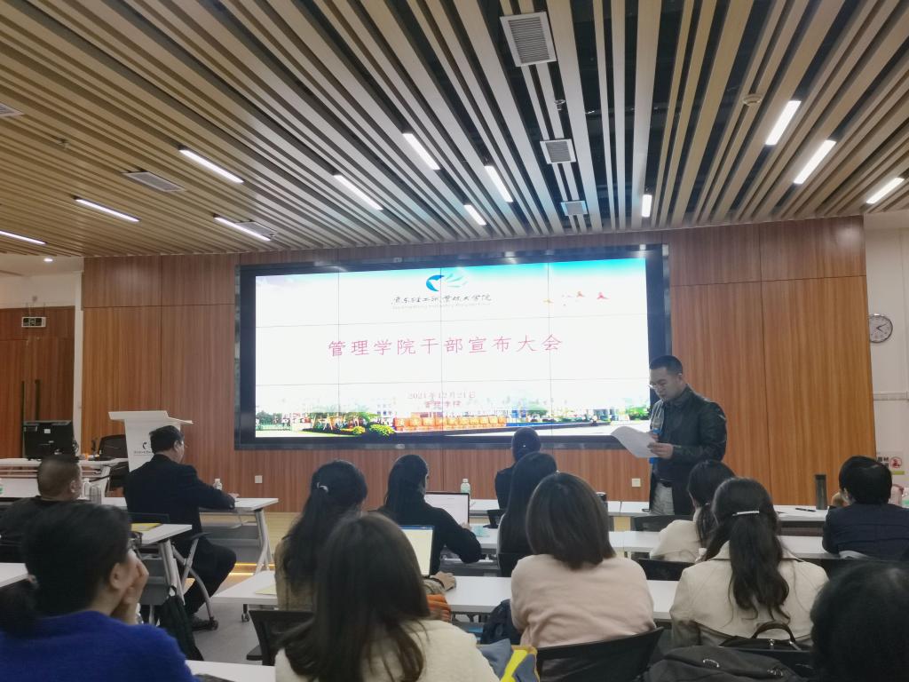 12月21日下午,学校在第二实训楼B604召开管理学院干部宣布大会。学校副校长邓毛程、党委委员组织部部长黄华、党委办公室副部长齐正学出席了大会。管理学院党政班子成员、全体教师等参加了会议,党总支书记谢国伟主持会议。