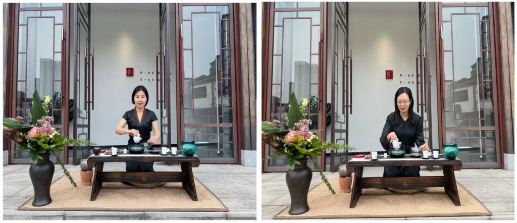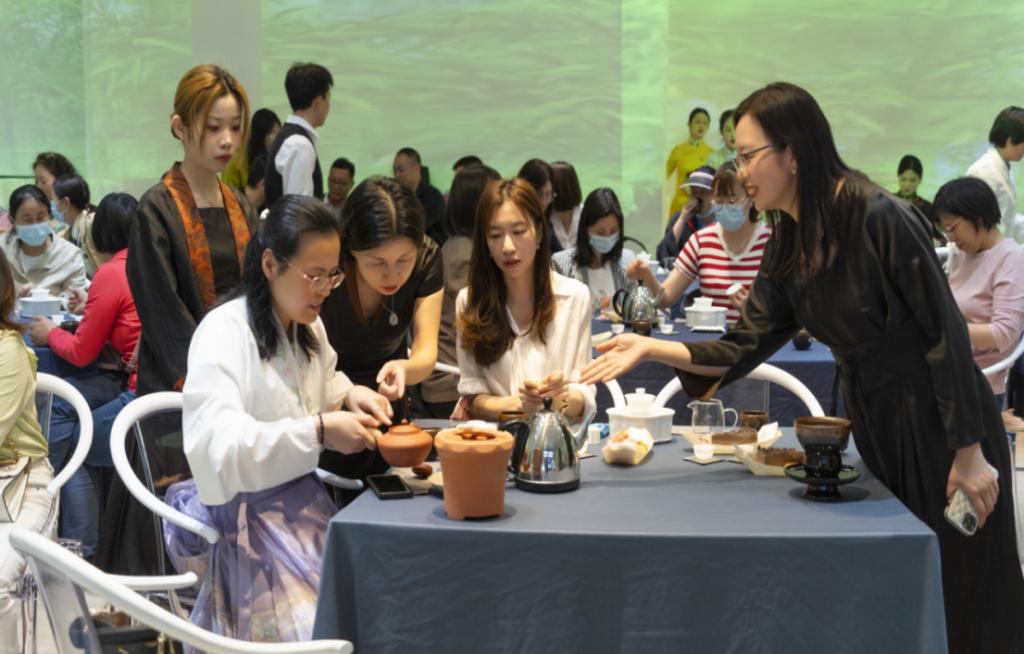 活动采用茶会现场教学,形式为户内及室外两个场地进行,培训内容丰富多彩:颂钵焚香静心、唐代煎茶、代表极致美学的宋代点茶,再到翁暖自创的平衡沏茶法。阵阵茶香,缕缕幽香,一场五感六触的盛宴让身着汉服的巾帼们穿越时空邂逅至纯至雅,让大家回归内心、不忘初心修炼专业内功提升素养。