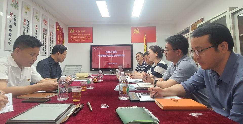 2023年5月24日上午,卢坤建校长亲管理学院指导工作,在第二实训楼1001会议室与学院领导班子召开座谈会。