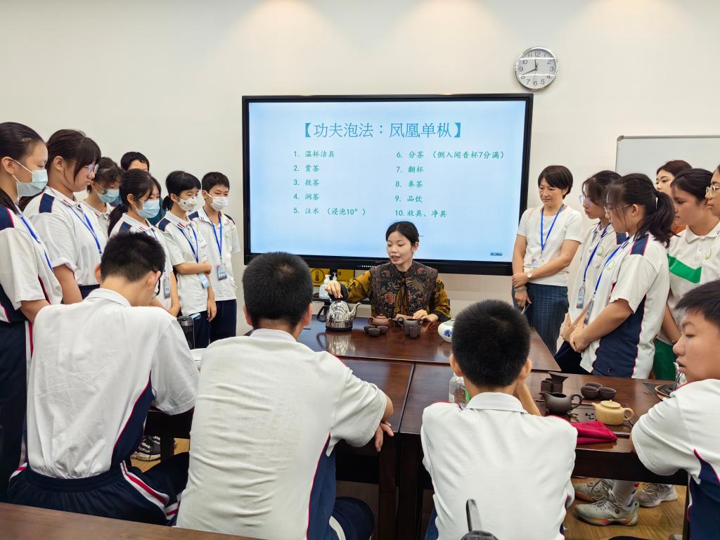 最后进行了茶艺实操环节,由林颖老师授课。学生们了解了茶叶的种类、冲泡方法和品茶礼仪。通过亲身体验冲泡茶的过程,学生们不仅掌握了技巧,还深刻感受到了中华传统文化的独特魅力。