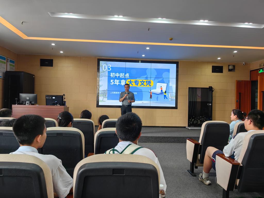 活动首先由副院长伍建海进行了精彩的宣讲,伍院长指出,随着国家对职业教育的重视,中学生升学途径也越来越开阔。有更多的学生通过职业教育实现自己的价值,考上大学、甚至是研究生也成为可能,职业教育大有可为!职业教育教学过程注重实践、实训和实习,校企联合培养孕育出一代又一代能工巧匠,技能高手进入顶尖企业工作不是个案,从省级到国家级,再到国际舞台,都为职校生敞开了大门。
