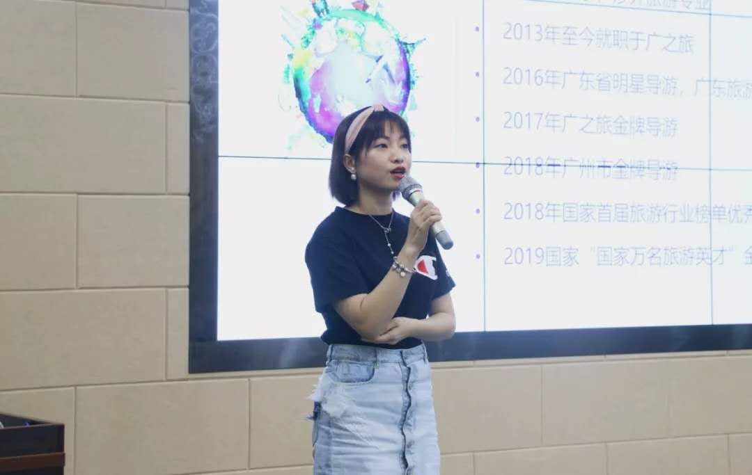 9月26日旅游专业优秀校友、金牌导游杨晓敏于第二实训楼b602进行经验分享。
