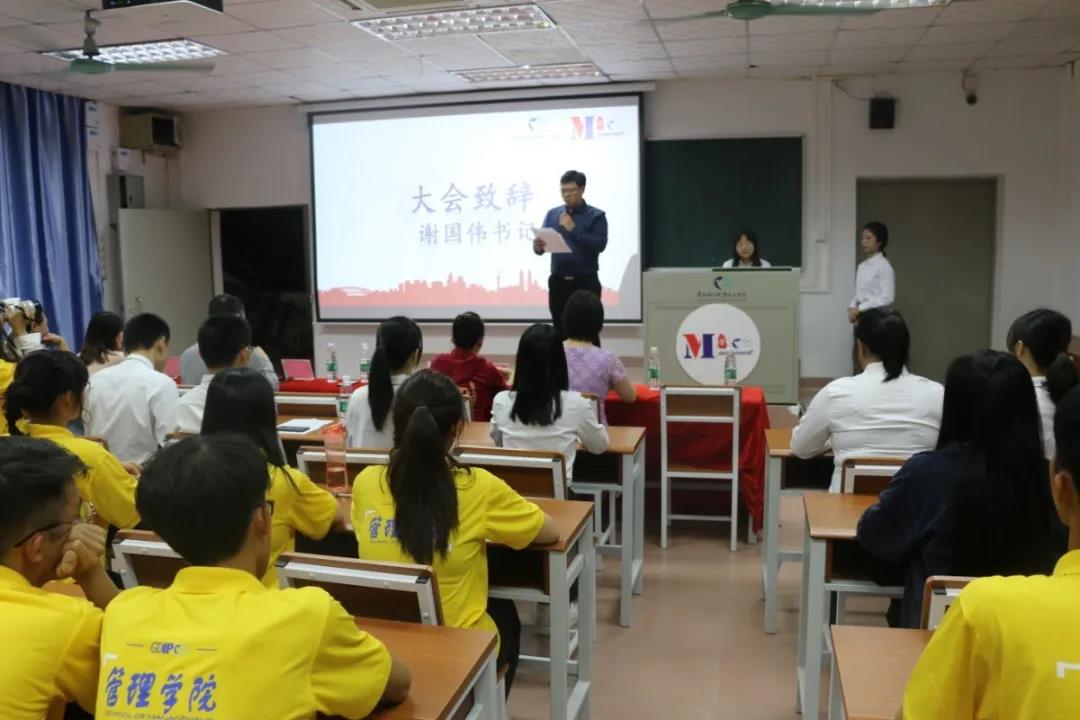接下来,党总支书记谢国伟为仪式致开幕词。青马班的开设,全面贯彻党的教育方针,培育和践行社会主义核心价值观,加强对学生骨干的业务能力和综合素质的培养。谢国伟书记讲述了我院上一学年所获荣誉,大大增强了学生的荣誉感。在对学生干部的不断期待中,希望学生自觉践行德能兼备,学以成之的校训。